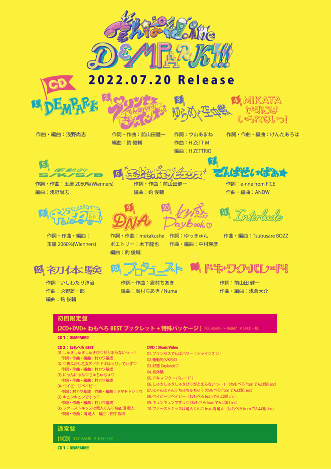でんぱ組.incが7月20日にリリースするニューアルバム『DEMPARK!!!』の収録曲順と楽曲制作者が発表された。