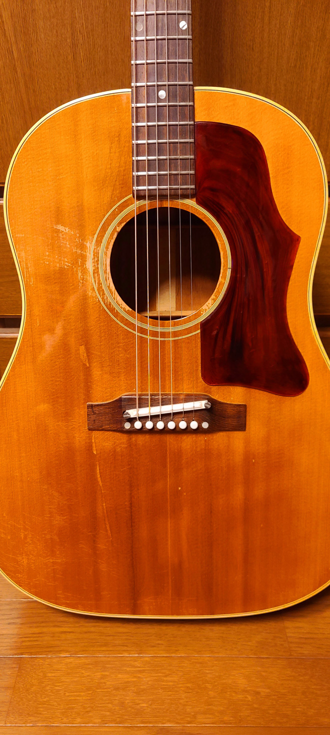 某アーティストの方がJ-50を使用しておりました(その方は1965年製だったと思います)。初めてその方の演奏を聞いた時、衝撃でした!!!もちろんアコギはアコギなんですが、なんと言いますか…もはや打楽器のような音なのです。荒々しい音だけど、どこか哀愁のあるような…とにかく心地よい音でした。