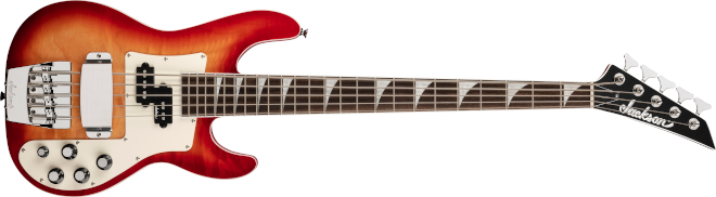 本製品は、アップグレードされたエレクトロニクス、クラシカルなジャクソンスタイルと高速で高効率なプレイを可能にする設計。ロックやメタルにとどまらず、重厚でパンチの効いた低音を必要とする他のあらゆるスタイルにも最適。34インチスケールモデルはポプラボディに、グラファイト補強ロッドを内蔵した、豊かなサステインをもたらすスルーネック構造を採用。超高速プレイをサポートする形状に仕上げられたメイプル製スピードネックは、12~16インチのコンパウンドラジアスローレル指板と24本のジャンボフレットになっている。カラーはFireburst。