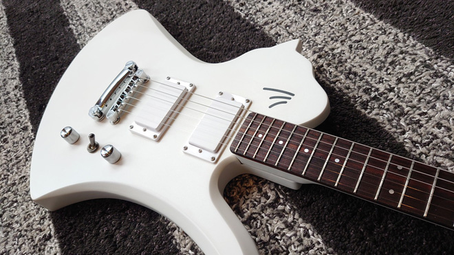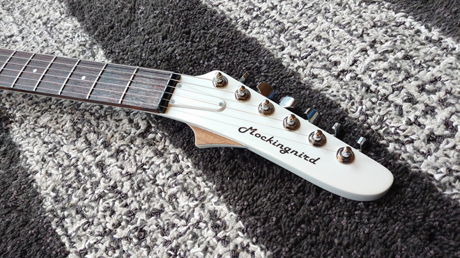 モッキンニャード…これまたド変態現る。しかも無駄にスキルフル。昔からネット上で崇め奉られてきた才能の無駄使い香具師ってお人や。前足を見るとジャンプしているときのような、おしりを見るとフガーと威嚇しているときのような、でもお顔は穏やかな猫様。こんな最高なギターある?エスカッションやPUカバーも真っ白というのがいいですね。ヘッドの引っ掛かり部分もウォルナットとか無駄なセレクトもナイス。TOPだけナチュラルなのも、どこか猫な感じがします(どいうこと?)。この完成度をみると、一方で切り落とされたMGの残りがどうなったのか、気になって夜しか眠れません。追記:「変人も集まればそれがマジョリティー」は間違いです。ただのマイノリティの大集合です。(JMN統括編集長 烏丸)