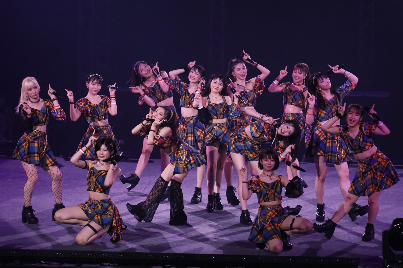 そこからセンタースクリーンに森戸のハロー!プロジェクト活動初期からの思い出ショットが映し出され、全員での「I WISH」へ。温かいバラード調のイントロからサビのポップな転調で一気に会場全体が多幸感に包まれる。スクリーンに映るツアー中の楽屋裏ショットや全員でのライブ前の円陣と、ステージ上で歌い踊るメンバー達の姿が重なり、曲終わりには森戸が様々な思いを巡らせたのか嬉し泣きしそうな表情をみせた。後半はメドレー含め、ほぼノンストップで10曲をパフォーマンス。熱量たっぷりに汗を光らせながら圧巻のステージを演じあげた。