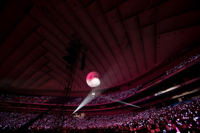 そしてアンコールでは、まふまふは“まふてる”型の巨大な気球に乗って登場。地上10数メートルの高さでドーム内をぐるりと回り、スタンド2階席、3階席の観客に手を振りながら、ハイテンションな「すーぱーぬこになれんかった」、キュートな歌声を響かせた「女の子になりたい」と続けて歌う。気球からステージに戻ったまふまふは、一言「マジで怖かった!」と告げる。久しぶりの高所に足がすくんで途中からは座り込んでいたのだという。