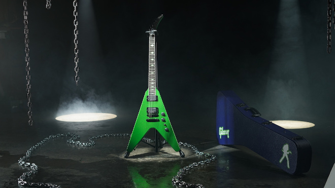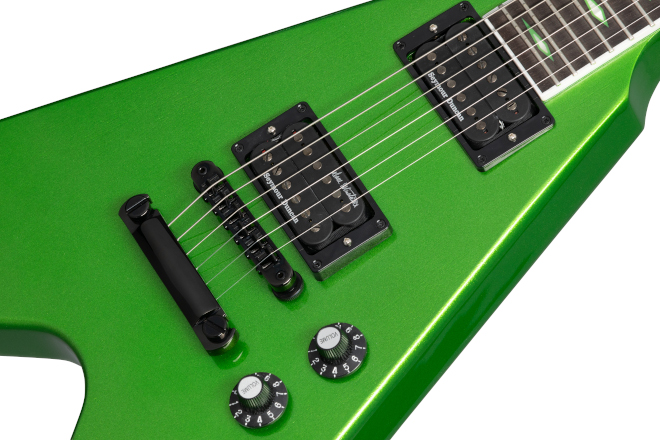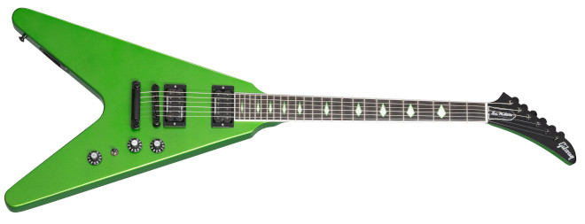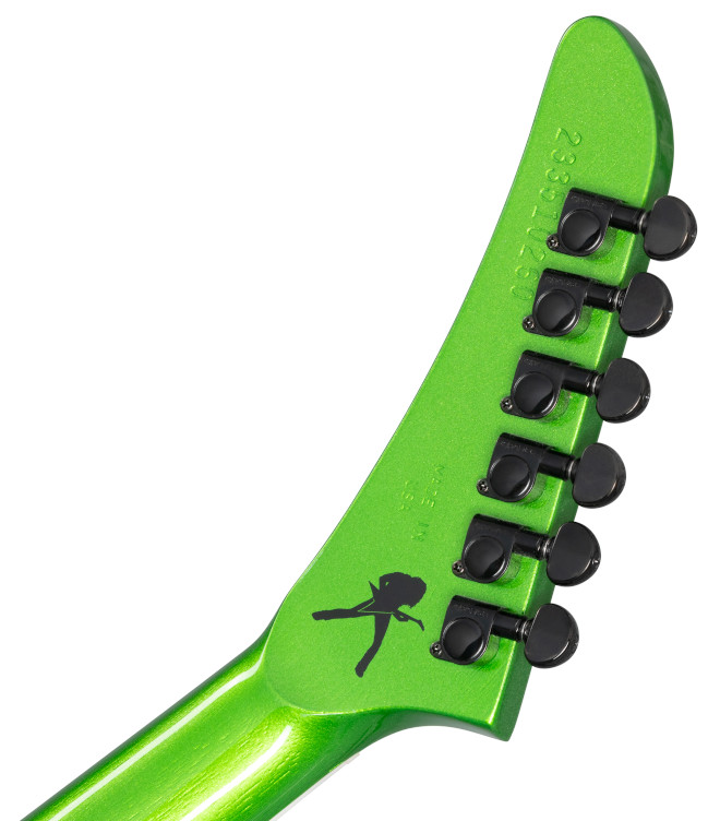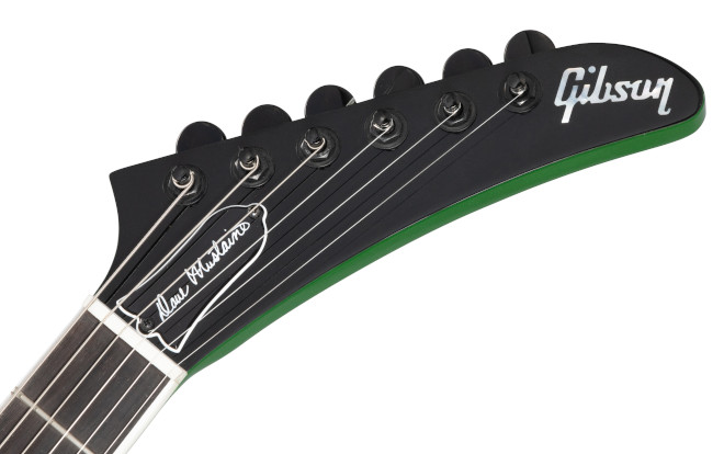 マホガニー・フライングVスタイルのボディには、Tune-0-Maticブリッジとストップバー・テールピース、さらにデイヴ・ムステインのシグネチャー・ピックアップであるSeymour Duncan Thrash Factorがペアで搭載。グリーンが際立つエイリアン・テック・ グリーンのニトロセルロース・ラッカー・フィニッシュで仕上げられ、ブラック・クロームのハードウェアも特徴的。全ての製品には、“ラスト・イン・ピース”カスタム・ハードシェルケースと、デイヴ・ムステインのシグネチャー“Richter”ストラップが付属する。