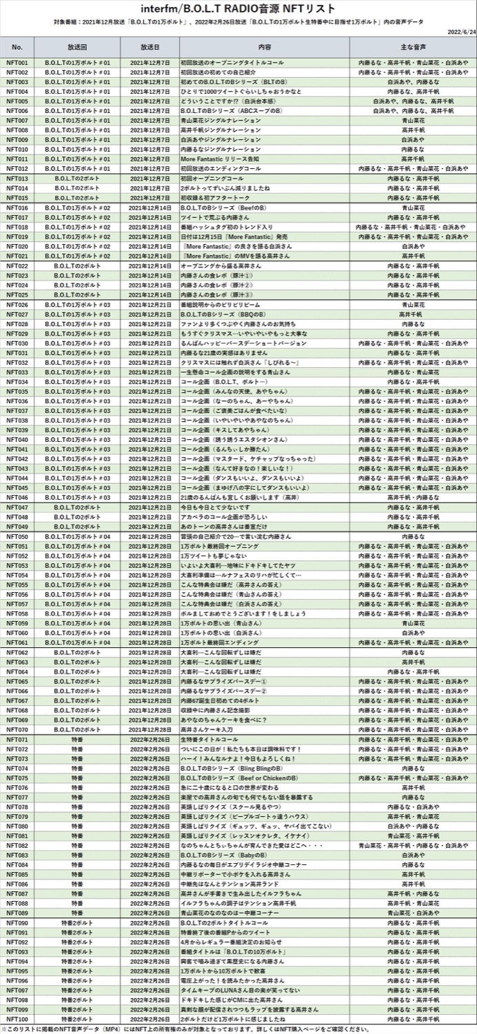 〇interfm「B.O.L.T」ラジオ番組音声データ」NFT