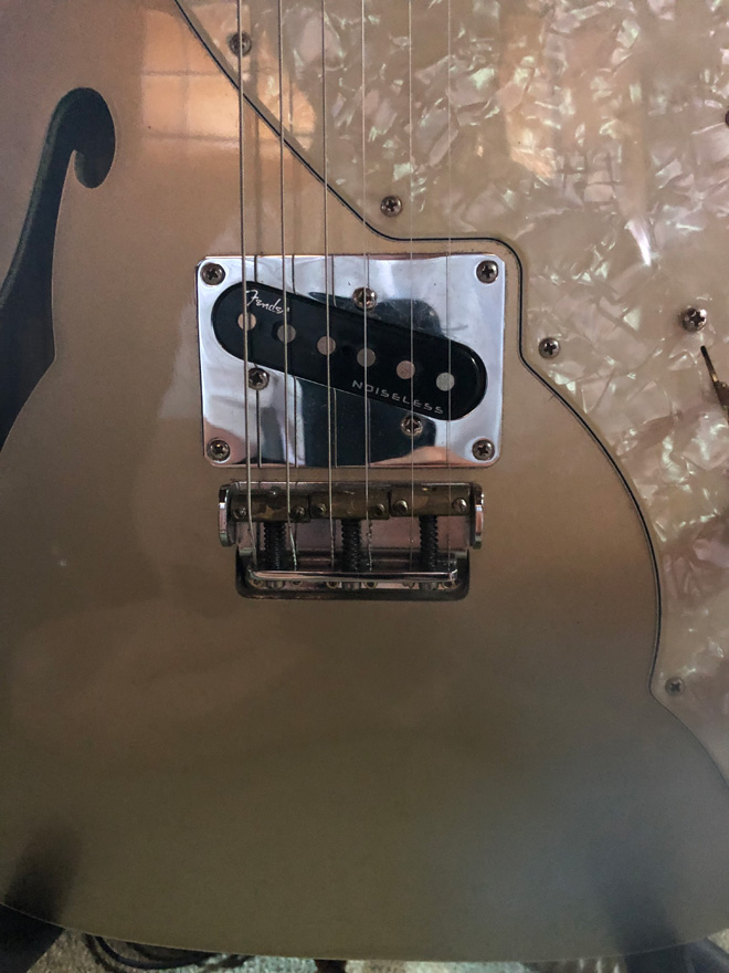 あと、アメリカンエリートシリーズ固有なのかブリッジの固定方法が独特で、初めての弦張替えの時にブリッジがボロっと落ちて「どう固定するんだ!?」ってなり焦りましたw。元々、ギタリストとしてプレイしてこなかったので音がどうこうなんて事は一切分かりません!DTMで使う場合でもコンピングを狂った様に多用するので、大したプレイも出来やしません(泣)。まぁ、個人的な感想を述べるなら「セミホロウだろうがなんだろうがテレキャスターの音だなぁ」としかw。