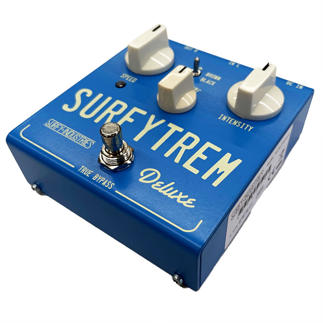 歴史的リバーブユニットと同じ仕様のコントロールを、チューブをJFETトランジスタに置き換えて再現するSurfy Industriesから、新たにステレオ入出力に対応したバイアスモジュレーションに基づいた数少ない真のトレモロペダルSURFYTREM Deluxeと、モノラルソースをステレオに分岐するABYペダルStereoMakerの2機種を発売する。