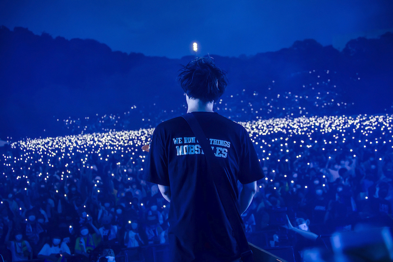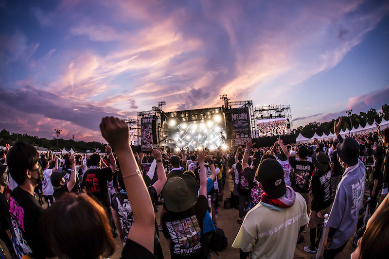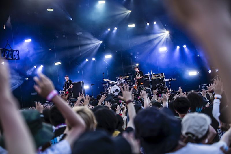 後半、ROTTENGRAFFTYのN∀OKI(Vo)、NOBUYA(Vo)を招いてパワーアップした「その向こうへ」で再びコブシを突き上げさせたところで、早くもラストの「RIVER」のイントロが響く。「いてくれるだけでええねん、またきてよ」「一緒に泣いて、一緒に笑おう」。曲中にそんな言葉を交えて感動の琴線を揺らし、また間奏ではオーディエンスにスマホの明かりをつけてもらい、前方から後方からとウェーブを起こしたりと、キラキラとした光景を目に焼き付けるようなステージ。終始、明るく柔らかな笑顔が満ちた10-FEETの3人に、アンコールを求める大きな拍手が沸き起こった。