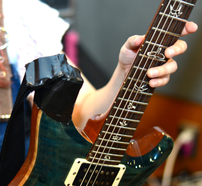 TOMO-ZO:最近、TikTokとかでPRSを弾いている動画をアップすると、「これ、Custom 24なの?」ってざわついている時があります(笑)。ガムテープでしっかりとストラップを固定して、大切に回しています。