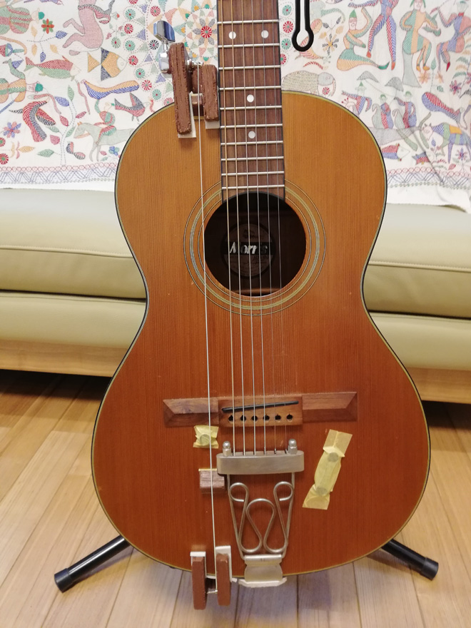 1回目はこのスロッテッド・ヘッドのパーラー・ギターのご紹介。