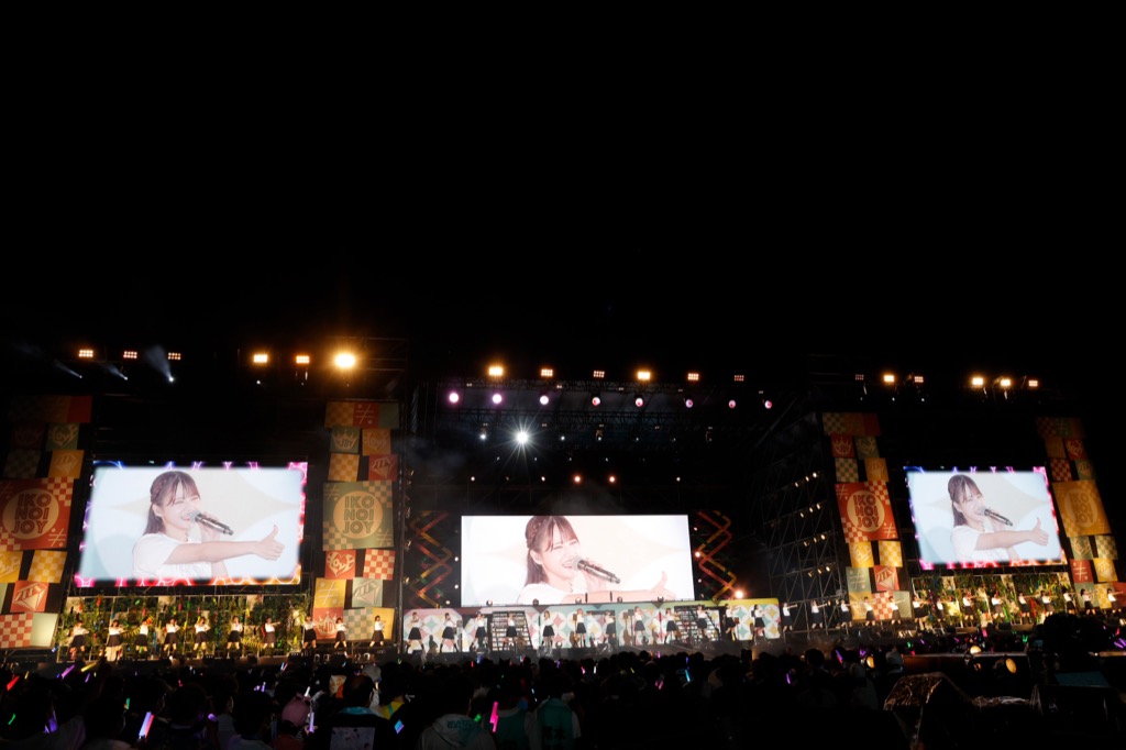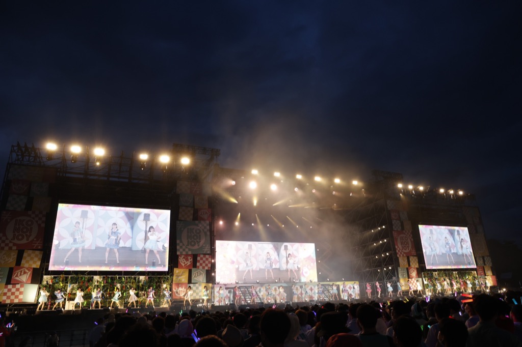 3組合同での迫力あるスペシャルなステージパフォーマンスと、メンバーとオーディエンスが一体となった唯一無二の空間。=LOVE、≠ME、≒JOY、そしてファンの皆と作り上げた野外合同フェスならではの感動的な公演となった。