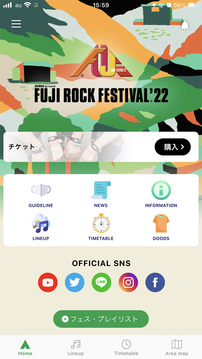 フジロックフェスティバルの公式アプリ2022年版がリリースされた。