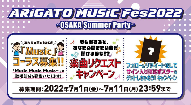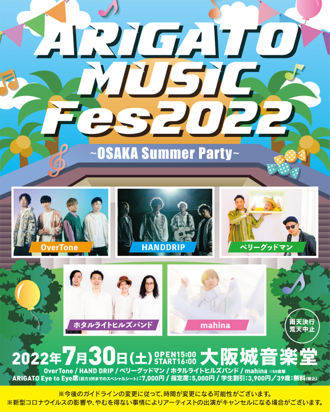 7月30日(土)大阪城音楽堂『ARIGATO MUSIC Fes 2022~OSAKA Summer Party~』