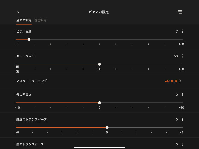 『Roland Piano App』では、ピアノ本体のさまざまな機能をスマートフォンやタブレットの画面上で操作することができる。マスターチューニングや鍵盤のタッチなどのピアノの基本設定から、メトロノームのテンポや拍子パターン、鍵盤を右側左側に分けてそれぞれ異なる音色で演奏する「スプリット」、2つの音色を重ねて演奏できる「デュアル」、鍵域を2つに分け、2人が同時に同じ音域で弾ける「ツインピアノ」の設定まで、画面で簡単に操作でき、日々の練習に大変便利だ。