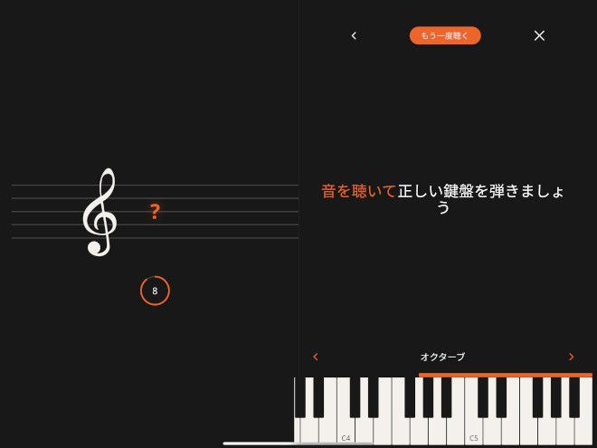 聴音や譜読みのトレーニングをゲーム感覚で楽しめる「フラッシュ・カード」も搭載。楽しみながらピアノの基礎力を身に付けることができる。