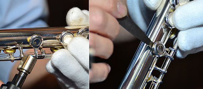 「そうですね。ただ、ハンドメイドといって高級な品番になるとネジがなくて。ヤマハのフルートではネジの下に革が貼ってあって、革の厚さによってバランスをとります。作業としてはけっこう難しいです。」