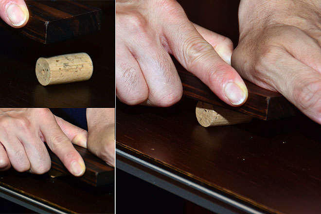芯金を立てていた木製の台を使って均等に体重をかけながら、コルクを前後に転がしていく。ちょっとそば打ちにも似た作業だ。