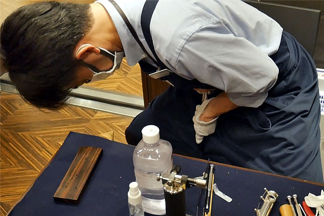 「修理代としてはクリーニング、磨きも含めて5~6万円ぐらいですね。あとはランクによって、先ほどのハンドメイドだとバランスの調整が難しいので1万円くらいプラスになります。」