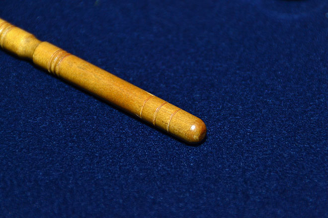 「市販はされてませんが、専用工具として買うことはできます。これは自分で黒檀で作ったものです。変化しないようになるべく硬いもので作ります。」