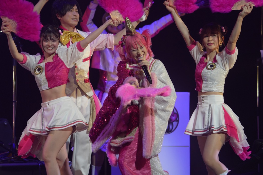 ネルによる「コマネチ!」の言葉を合図に全メンバーが“コマネチ”のポーズを披露するなど、息の合ったプレイで本編までの熱を落とすことなく引き継ぐと、「バブリー革命~ばんばんバブル~」ではきらびやかな色とりどりの光が浅草公会堂を染め上げていく。円安悲嘆を吹き飛ばす令和バブルの世界がここに再現。江夏と蕪木がかわるがわるお立ち台でその歌声を轟かせる。