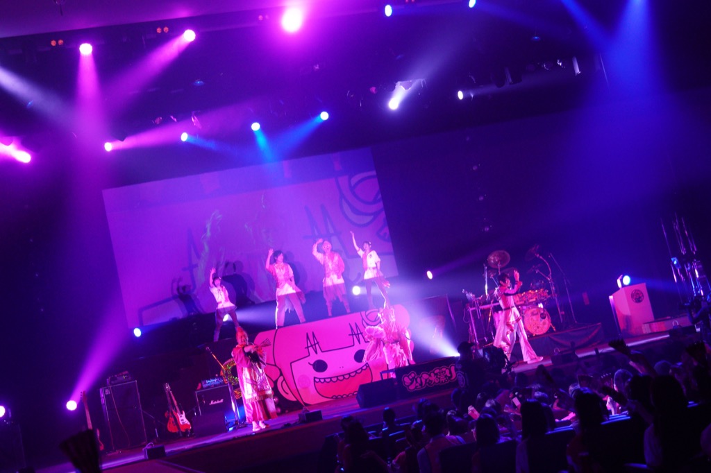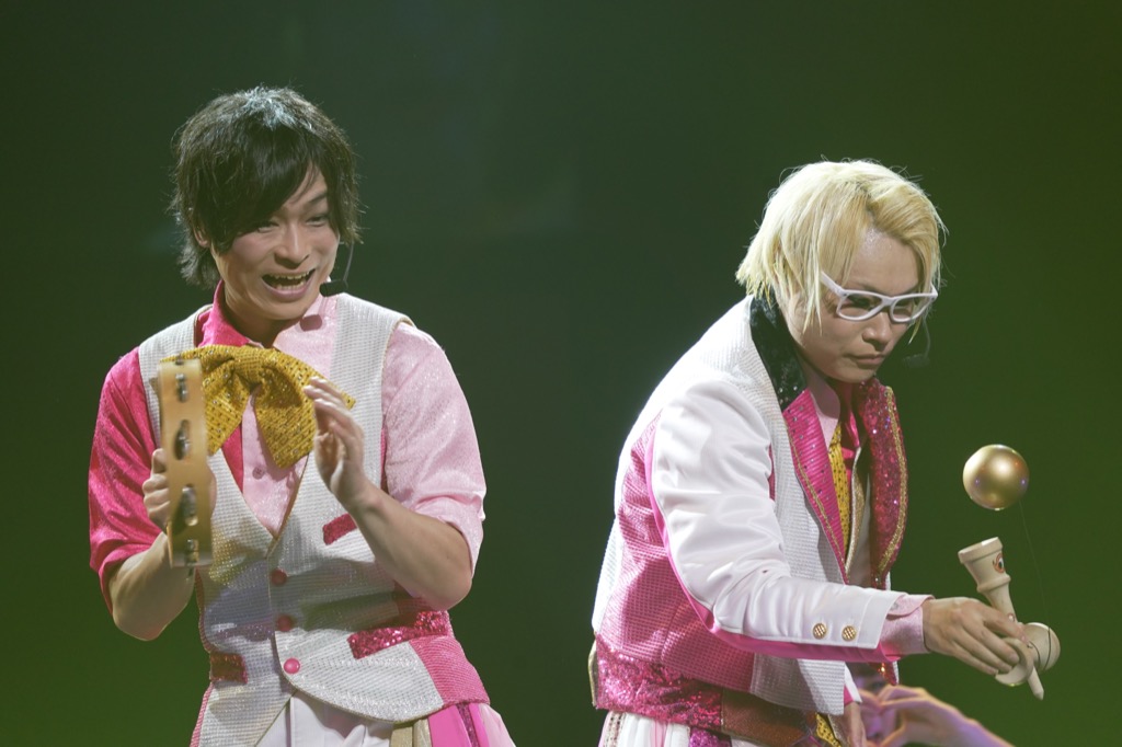 「だーりん」では江夏とノブを除く全員が、真赤に彩られた花道にてダンスを踊り、浅草公会堂という場所を最大限活かした演出を展開。さらにはセンターにあるお立ち台で、ダンクがタンバリンを、そしてネルがけん玉パフォーマンスを披露する。