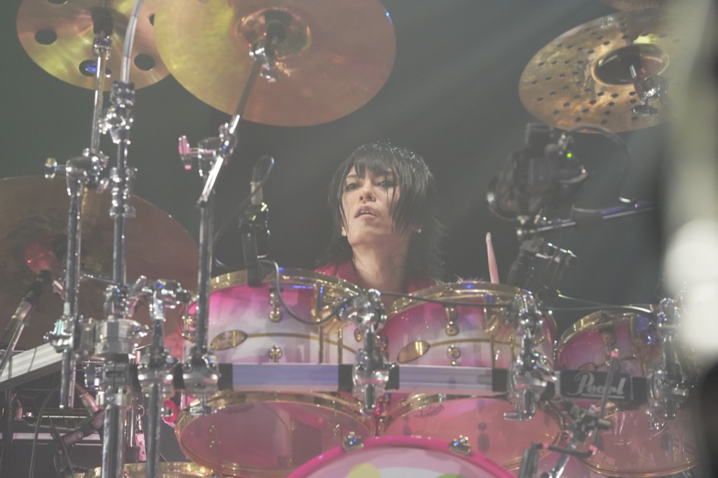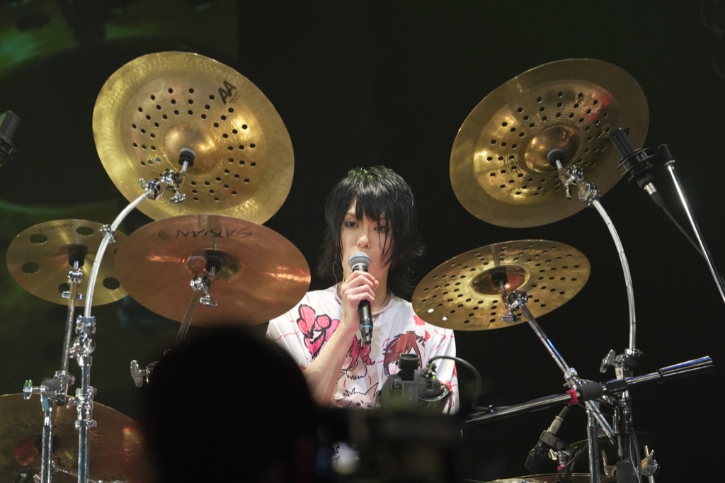 「もうちょっとだけいこうか、拳上げて!」と江夏がさらにオーディエンスを煽ると、本編の最後を飾るナンバー「リグレット~君を想い返している~」へ。ここで“小蕪木”のふたりは退場。再びサポートギターでノブが加わり、江夏もドラムに戻ってバンド編成でのライブとなる。