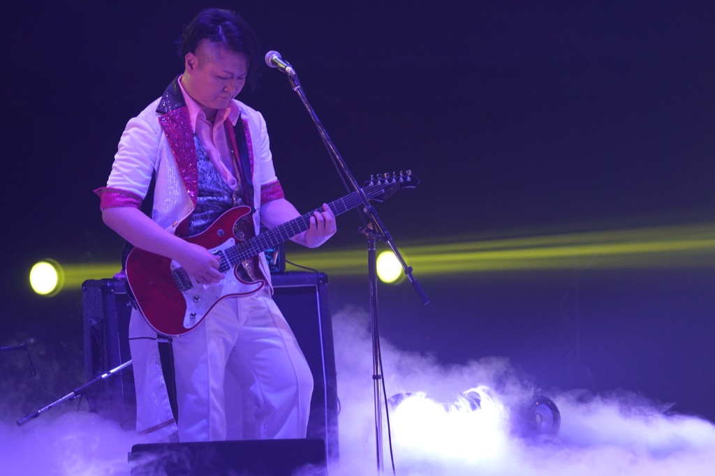 ネルの「ドル!ユーロ!ポンド!ペソ!ウォン円元!バブリー!」MIXを合図に4曲目「しゅわわ。なシャララ。」へと突入。哀愁を感じさせるメロディに乗る蕪木の見事な歌唱と、パフォーマーたちによる軽やかなステップを刻むダンスの対比も面白い一曲だ。そしてノブの、パンチのあるギターソロがさらに楽曲を引き締める。