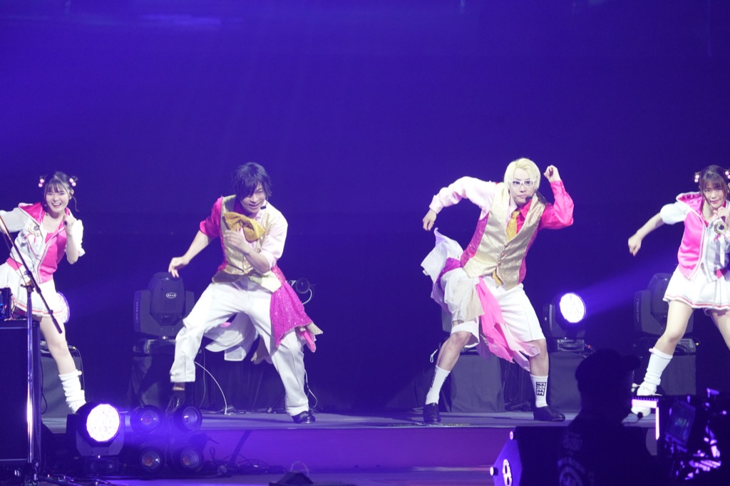 力強い“うりゃ!おい!”コールも印象的な「紫陽花モードで責めてくれ!」は、お立ち台を下りた江夏がダンクとの絡みを見せて会場を沸かす。続く「無敵シュプレヒコール~このSを、聴け~」では大ゼリと通常ステージ、それぞれに分かれた蕪木と江夏による迫力のツインボーカルがオーディエンスを魅了し、さらに矢島がセンターで踊るという緩急たっぷりな構成で畳みかける。