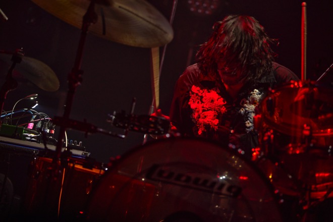 最も変わったのは小林祐介(Vo, G)だ。おそらくBOOM BOOM SATELLITES中野雅之との新バンド、THE SPELLBOUNDからのフィードバックが相当に大きい。隙のない歌唱力、楽曲の世界観を語り尽くす表現力、バンドと観客を天国へと導いていく牽引力。ハンドマイクになった「New York」以降はもはや彼の独壇場で、「楽園」から「KANEDA」のカバー、そのまま「BAD DREAM」になだれ込む瞬間は気持ちよすぎて何度も意識が遠のく。ビートに導かれて身体ごと投げ出したくなる剥き出しのエネルギー。目の前には、両手を高く掲げて舞い踊る、神々しいまでのロックスターがいた。