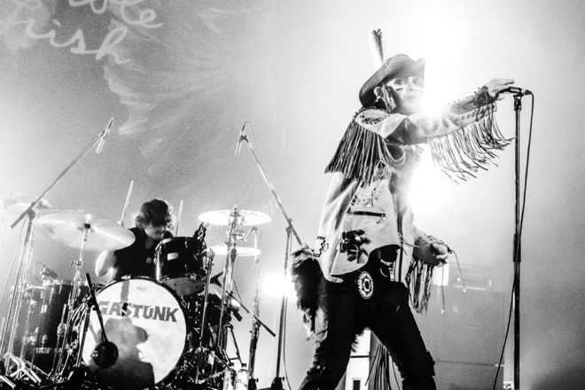 嬉しそうに語るHYDEの表情は、まさにバンドキッズのそれ。初日公演後の夜はGASTUNKのメンバーに、「どうやって曲を作ってるのか?」「何を食べてるのか?」というファン目線な質問をしたと言う。だからこそ、「GASTUNKから受け継いだDNAがいかに強力であったかということを、彼らに見せないと」と決意したそうだ。事実HYDEは、ステージ上手側に積み上げられたスピーカーの上に登り、フロアを煽りながら熱唱するなど、いつにも増してアグレッシヴ。ゴリゴリのラウドサウンドを響かせるHYDEバンドも縦横無尽にステージを動き回り、狂気の宴を盛り上げる。まだツアー中ゆえ、セットリストの詳細には触れないが、約1時間のHYDEのステージは、自身の初期衝動が再燃するようにあまりにも過激に繰り広げられた。