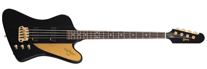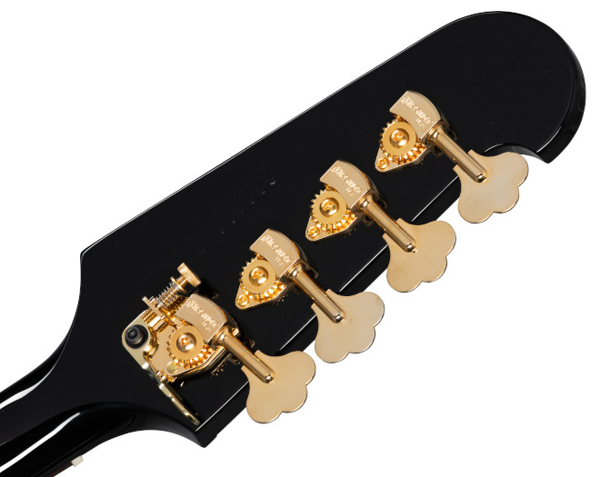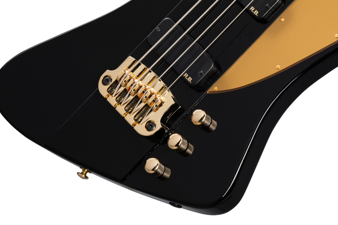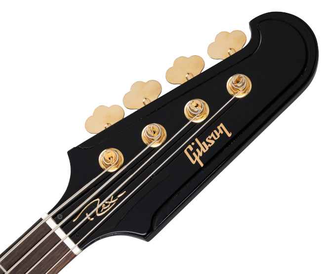エボニーのボディにゴールド・パーツのアクセントが印象的なこの最新『レックス・ブラウン シグネチャー・サンダーバード・ベース』は、レックスとギブソンのルシアーが2年半もの歳月を費やして、あらゆるレベルのベーシストに向けて開発した最新ベース・ギター。