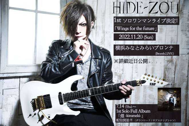 DのギタリストHIDE-ZOUが、11月20日に横浜みなとみらいブロンテ(Bronth. LIVE)にて1stソロワンマンライブを開催することが決定した。