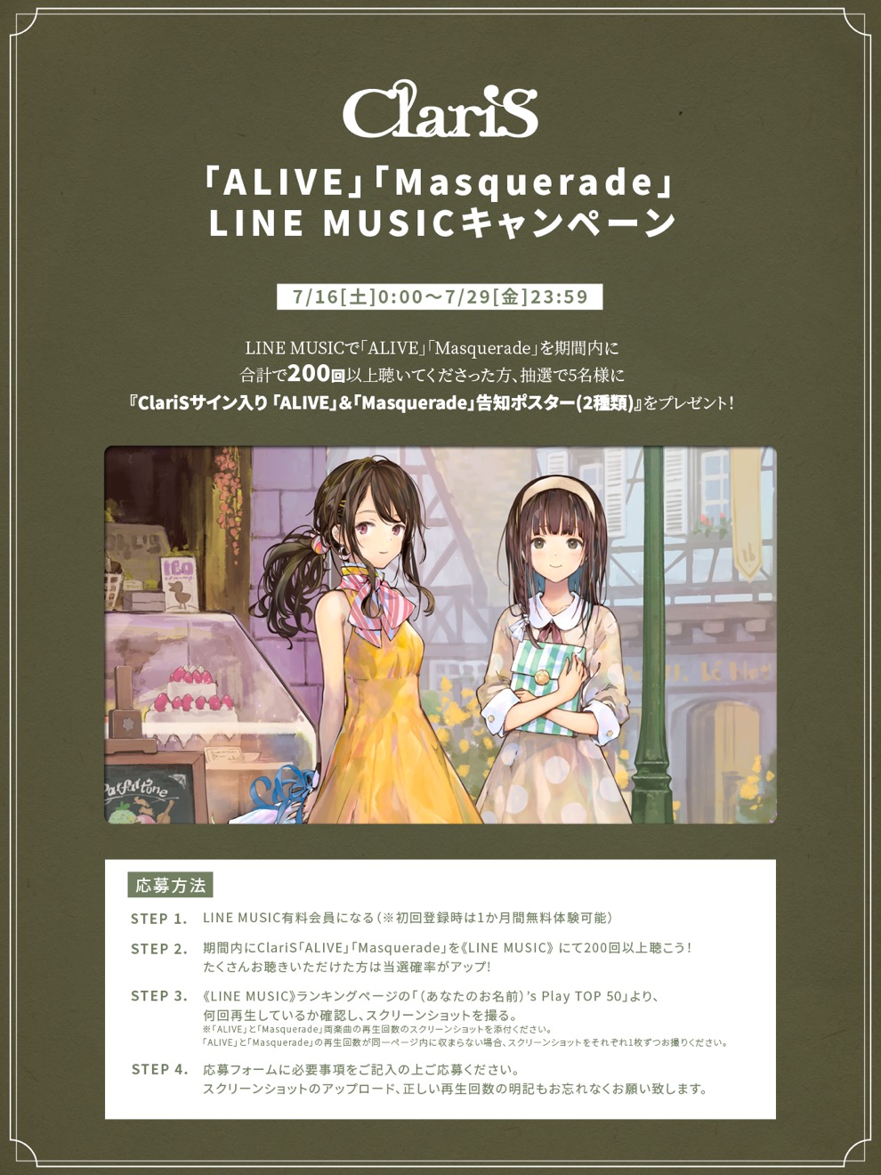 期間内にClariS「ALIVE」「Masquerade」を《LINE MUSIC》 にて200回以上聴こう!