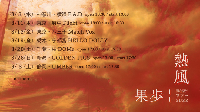 なお、果歩は7月30日に東京・下北沢440で自主企画ライブ<朝凪>を開催することも決まっている。各公演の詳細はオフィシャルサイトにて。