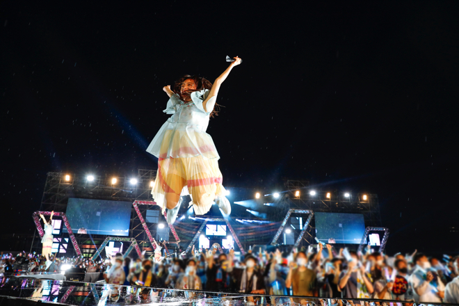 本編最後の曲に選ばれたのは、最新シングル「僕なんか」収録曲の「知らないうちに愛されていた」。温かみの強いサウンドにポジティブなメッセージを乗せたこの曲について、佐々木久美は「今は皆さん、声を出せないですけど、いつか声が出せるようになった日にみんなで一緒に歌っていきたいなと思っている曲です。一緒に心の中で歌ってくださるとうれしいです」とおひさまに伝えたが、曲終盤のシンガロングパートではさらなる一体感を生み出すことができそうだ。きっと会場にいた多くのおひさまも、心の中で一緒に歌うことでステージ上のメンバーと心をひとつにしていたはずだ。