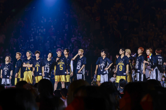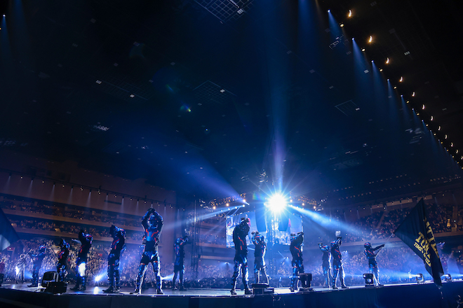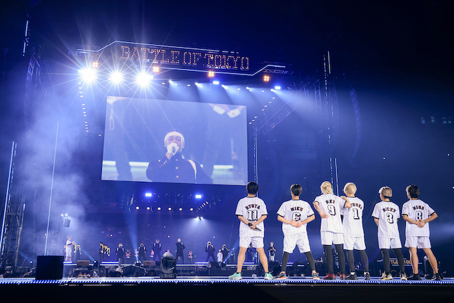ライブ前半には、『BATTLE OF TOKYO』に描かれる伝説のバトルステージ“バビロニウム”も召喚され、FANTASTICSの「Summer Bike」やGENERATIONSの「チカラノカギリ」といった最新のオリジナル曲も挟みつつ、4チームが総当たりで白熱したバトルを繰り広げた。