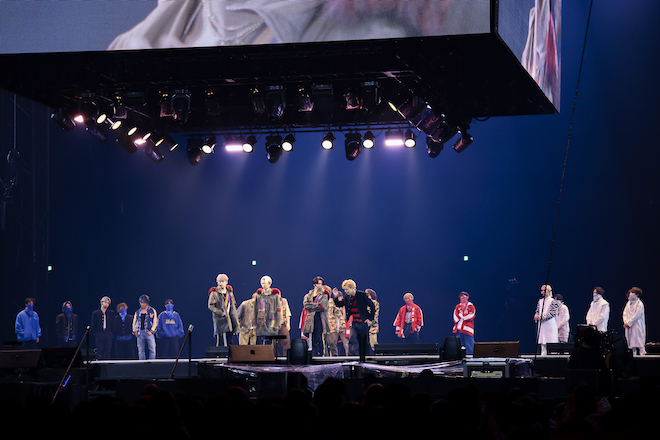 さらに、小森隼が「玲於がいないんだよ。玲於!?」と呼びかけると、那須川天心が『THE MATCH 2022』で着用していた衣装に身を包んだ佐野玲於が、格闘家さながらのポーズでセンターステージに入場。終始笑いの絶えないファッションショーだったが、佐野の後を追うようにゲストとして現れた那須川本人の「緊張してますけど、なんかあったら全員倒せるので(笑)」という最強の一言が、真の『BATTLE OF TOKYO』の幕開けを告げた瞬間でもあった。