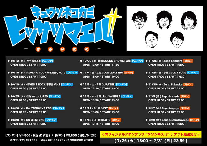 詳細はキュウソネコカミHP https://kyusonekokami.com/