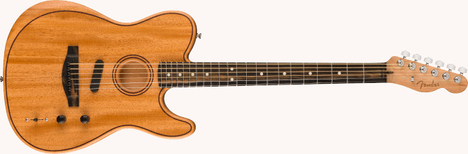 2019年にフェンダーが発表したAmerican Acoustasonic Telecasterは全く新しい楽器のカテゴリーを生み出した。Stratocasterと Jazzmasterモデルがラインナップに加わり、そして今回、新たなトーンウッドオプションとしてトップ材にマホガニーを採用した「American Acoustasonic All-Mahogany」が追加された。本シリーズからは、TelecasterモデルとJazzmasterモデルが発売となる。