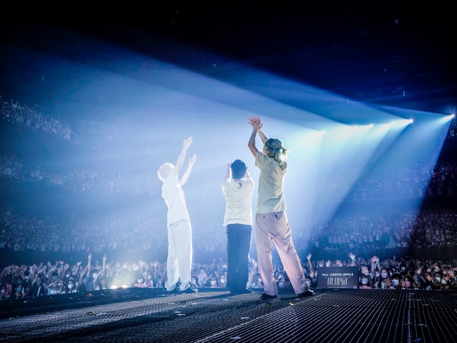 アンコールを終えた3人は、肩を組み、そして手を振ってステージを去っていった。それは過去と区切りをつけるものではなく、清々しく、そして華やかに、今後もMrs. GREEN APPLEを続けていくのだという力強い宣言のようにも感じられた。