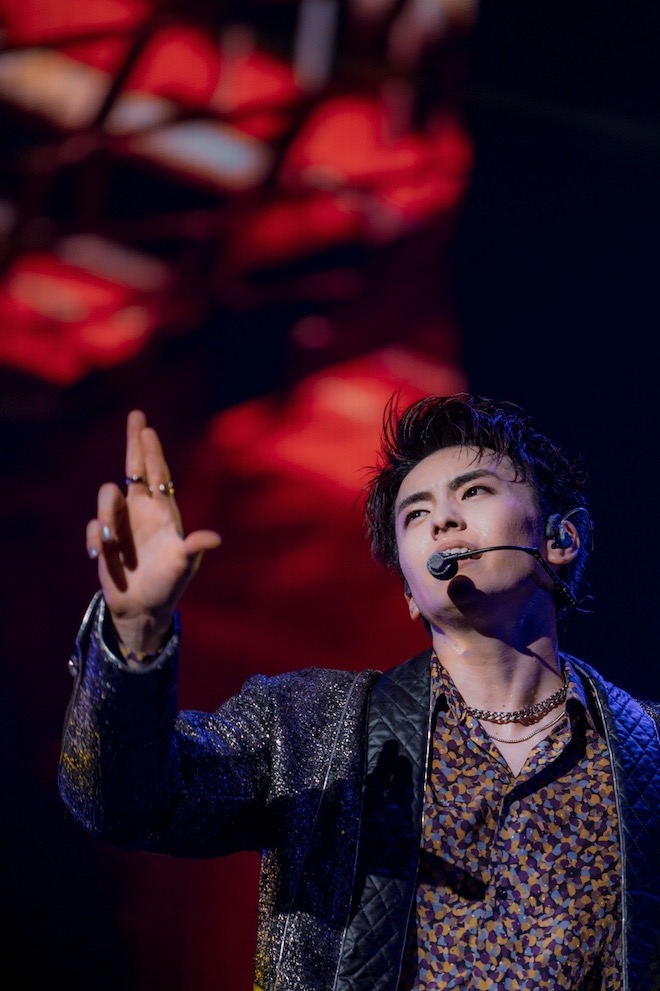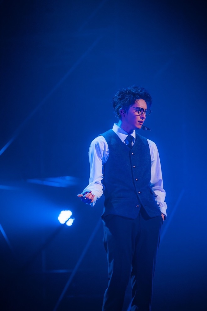 「僕のおすすめ、出してもいいですか?」と言い「Embrace」では優しい歌声が。グラスを使ったダンサーのパフォーマンスと共に、イスに座って語りかけたり、楽曲の世界観に沿い、雪のような紙吹雪が舞う演出で会場はしっとりした雰囲気に。