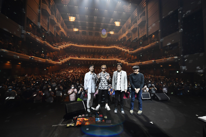 SKYEは日本の音楽業界を支え続けてきた鈴木茂(G)、小原礼(B)、林立夫(Dr)、松任谷正隆(Key)の4人が結成した全員70歳の新人バンド。昨年、10月にデビューアルバムを発表。7月14日の名古屋を皮切りに大阪、東京と周り、この日ツアーの最終公演を迎えた。