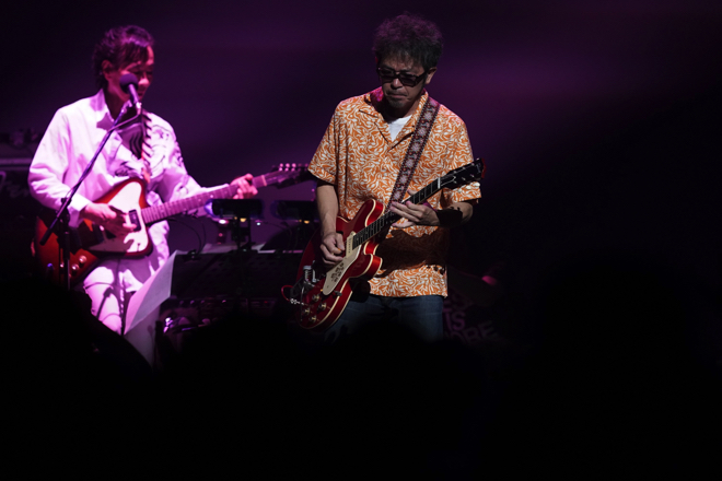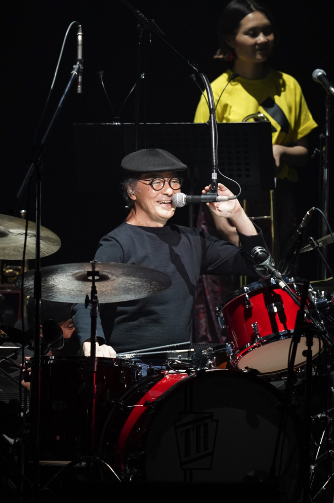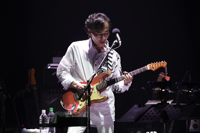 レアな選曲の連打で客席を大いに沸かせたゲストコーナーが終わると、再びSKYEのメンバーの演奏に戻る。鈴木茂から「『風街ろまん』(1971)を作るときに、松本隆さんから詞を頂いて書いた曲です。ライブでは何回か演奏してましたが、録音することはなかった曲です」とギターを弾きながら歌ったのは、はっぴいえんどの未発表曲「ちぎれ雲」。50年の時を経て今回のSKYEのアルバムで初めて録音された幻の曲だ。
