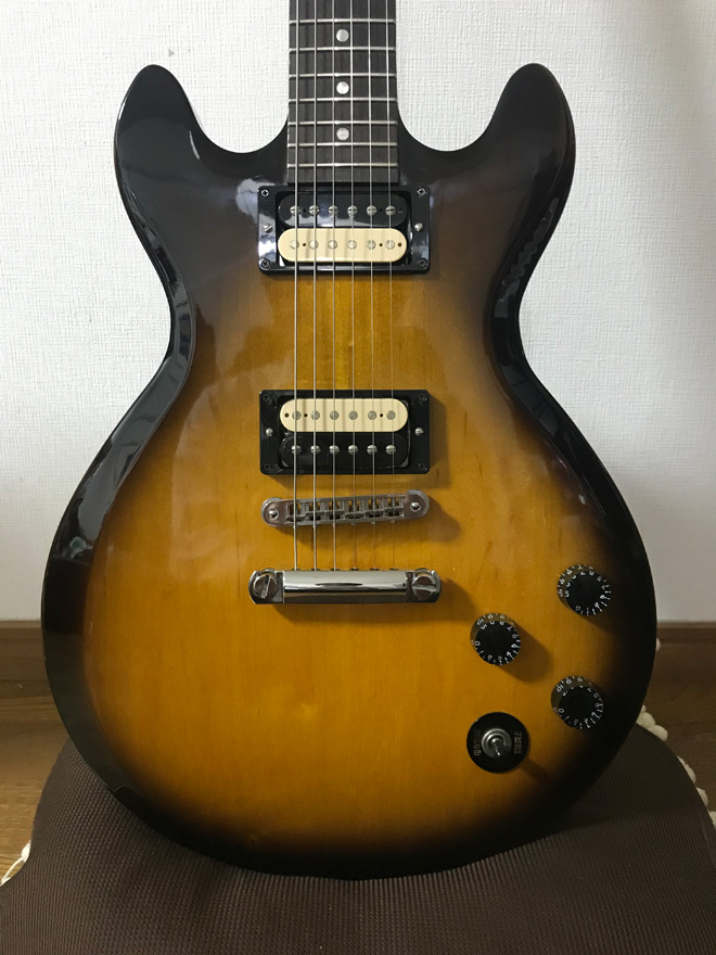 見たことも聞いたこともない機種でしたが、SGっぽい見た目・335という名前・「Gibson」というステータス・渋いタバコバースト、全てが刺さり即決購入。ピックアップが云々など関係なく、完璧な一目惚れでした。