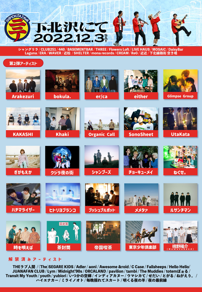 12月3日に東京・下北沢エリアで開催される<下北沢にて’22>の出演者の第二弾発表が行われた。