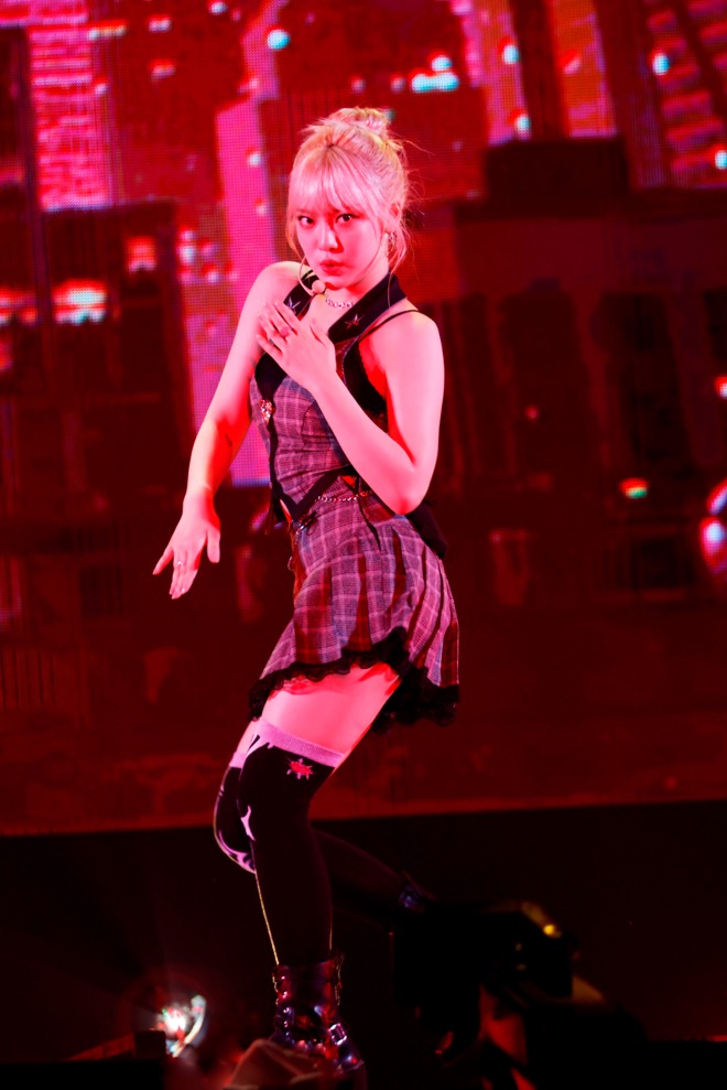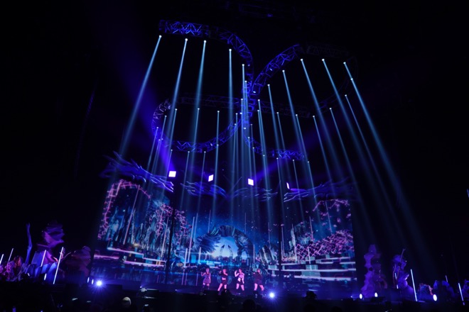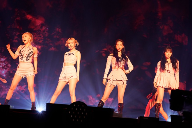その後も「Life’s Too Short (ENG ver.)」「Next Level」といったヒットナンバーをはじめ、「Lucid Dream」や「Illusion」などアルバムの収録曲を織り交ぜて、イベントを盛り上げていく。なかでも代表曲の「Savage」は、一糸乱れぬダンスの美しさや近未来的な演出が本公演のハイライトになった。