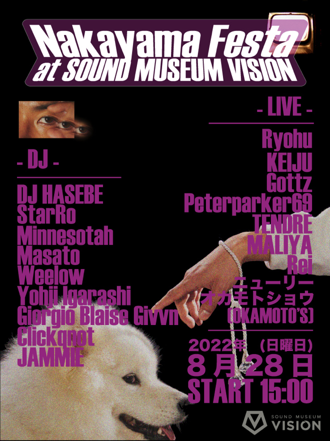 また、8月28日にSOUND MUSEUM VISIONとの共同主催イベント<NAKAYAMA FESTA>が開催されることも決定した。同イベントにはRyohuをはじめ、KEIJU、Gottz、TENDRE、Peterparker69、オカモトショウ、MALIYA、DJ HASEBE、StarRo、Neetz、Minnesotah、Masato、Weelow、Yohji Igarashi、Giorgio Givvn、ニューリーらが参加する。近日中に追加出演アーティストも発表予定とのことだ。
