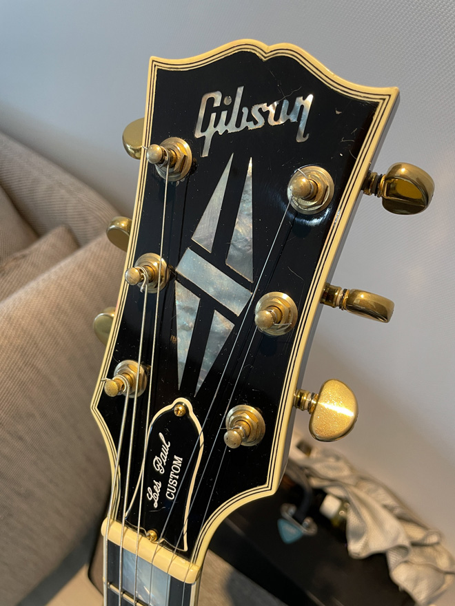 販売されているレスポールカスタムをネットで調べる際、”どうせなら”と私の誕生年と同じ1995年製のものを探し、その時に1本だけ見つけたのがこのギターでした。同い年のギターは何故か一段と愛着が湧きます。