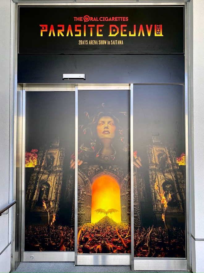 ビルを出てから振り返ると、出口には10月22日および23日にさいたまスーパーアリーナで行われる主催イベント<PARASITE DEJAVU 2022 〜2DAYS ARENA SHOW in SAITAMA〜>のビジュアルが全面に描かれていた。