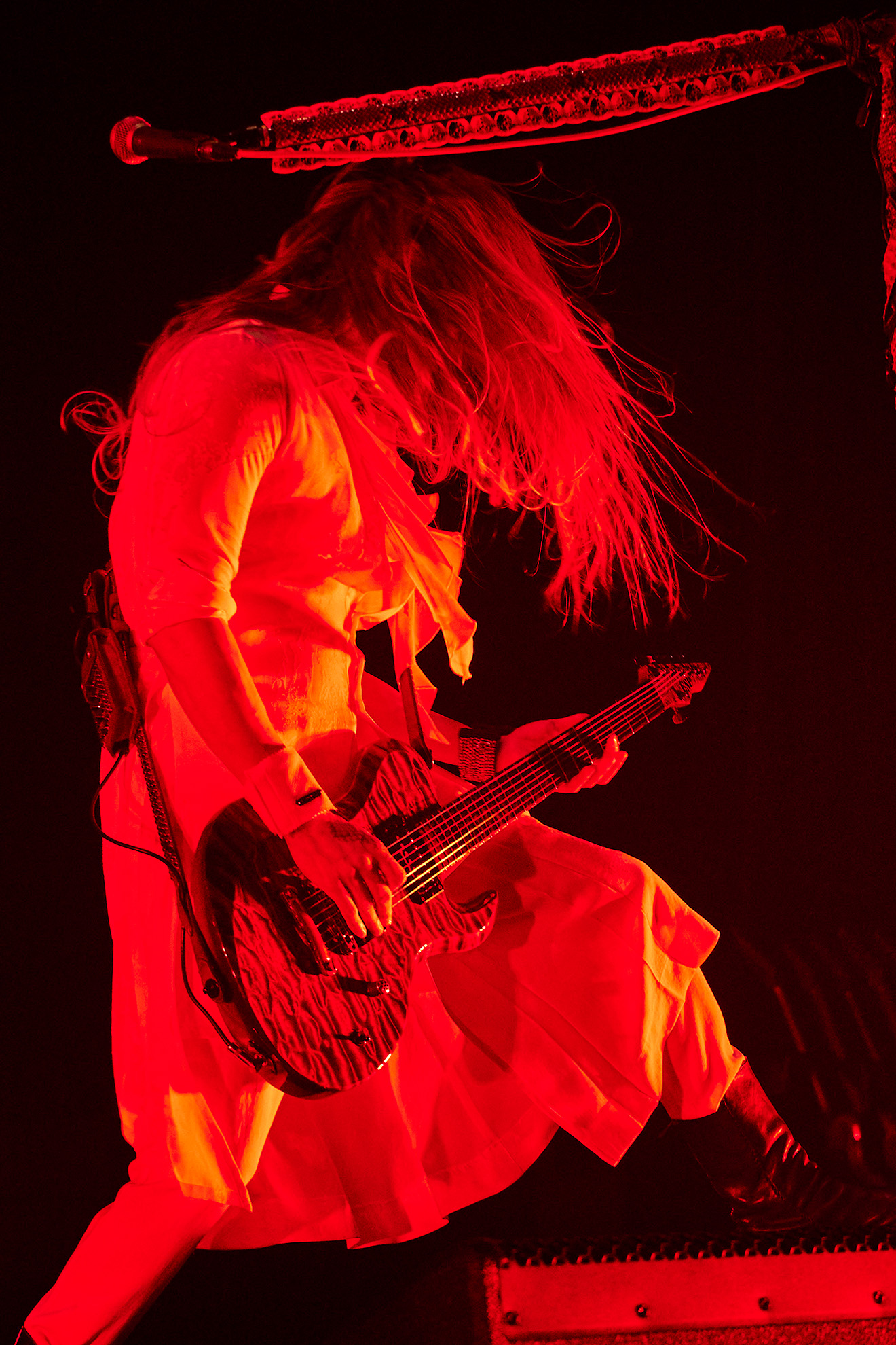 しかし「Schadenfreude」の中盤、京が吠えた。挑みかかるような形相を浮かべ、「中野! 掛かって来い!!」と煽りを喰らわす。その言葉にコブシを突き上げるオーディエンス。それを目にした京は「オマエらのクビをよこせ!!」と、さらに言葉を浴びせかけた。もちろんオーディエンスはヘッドバンギングしまくり、客席は激しく波打つ。同時に熱気も急上昇。