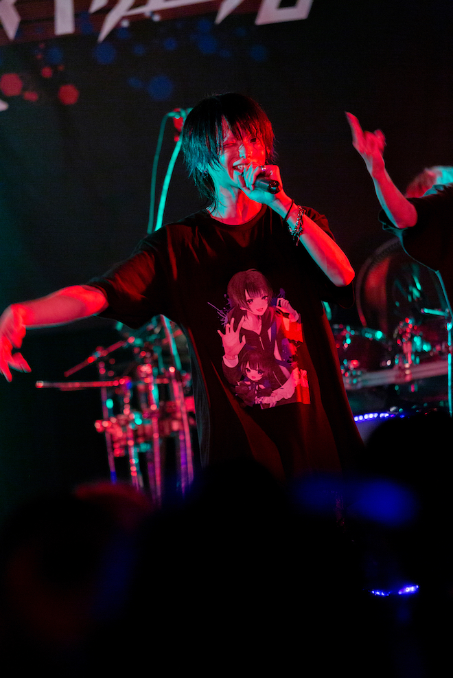 「辛いこともあったけど、LIQUIDROOMでこんなに良い景色を見ることができて、俺だけじゃなくてメンバーみんな幸せだと思います。スタッフ・関係者の方にお世話になってるし、ここにいるオタクもいなくなってしまったオタクも、みんなに支えられてます。そしてなによりも、このメンバーと一緒にステージに立つことができて、とっても幸せです。『世界で一番幸せ』とか大袈裟なことを言うのは好きじゃないけど、『今までの俺の誕生日の中で一番幸せ』です」と、禊のMCを挟んだ後、双極スペクトラムの原点「盲目信教BANBAN罪」から再び会場を盛り上げる。